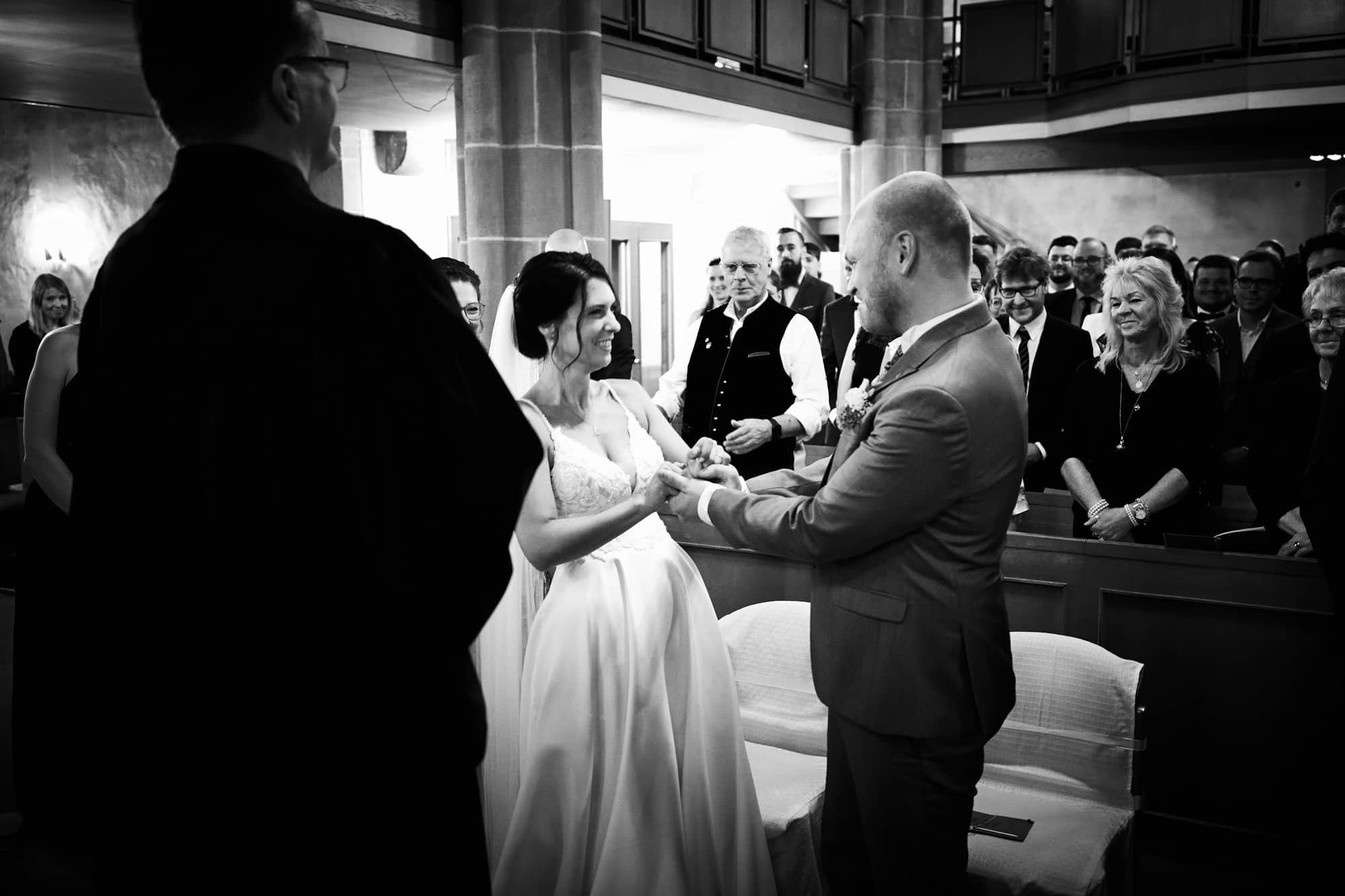 Beides: Während der Trauung bewege ich mich dezent und ohne Blitz. Bei Gruppen- und Paarfotos gebe ich klare Anleitung, damit alles entspannt und schnell geht.