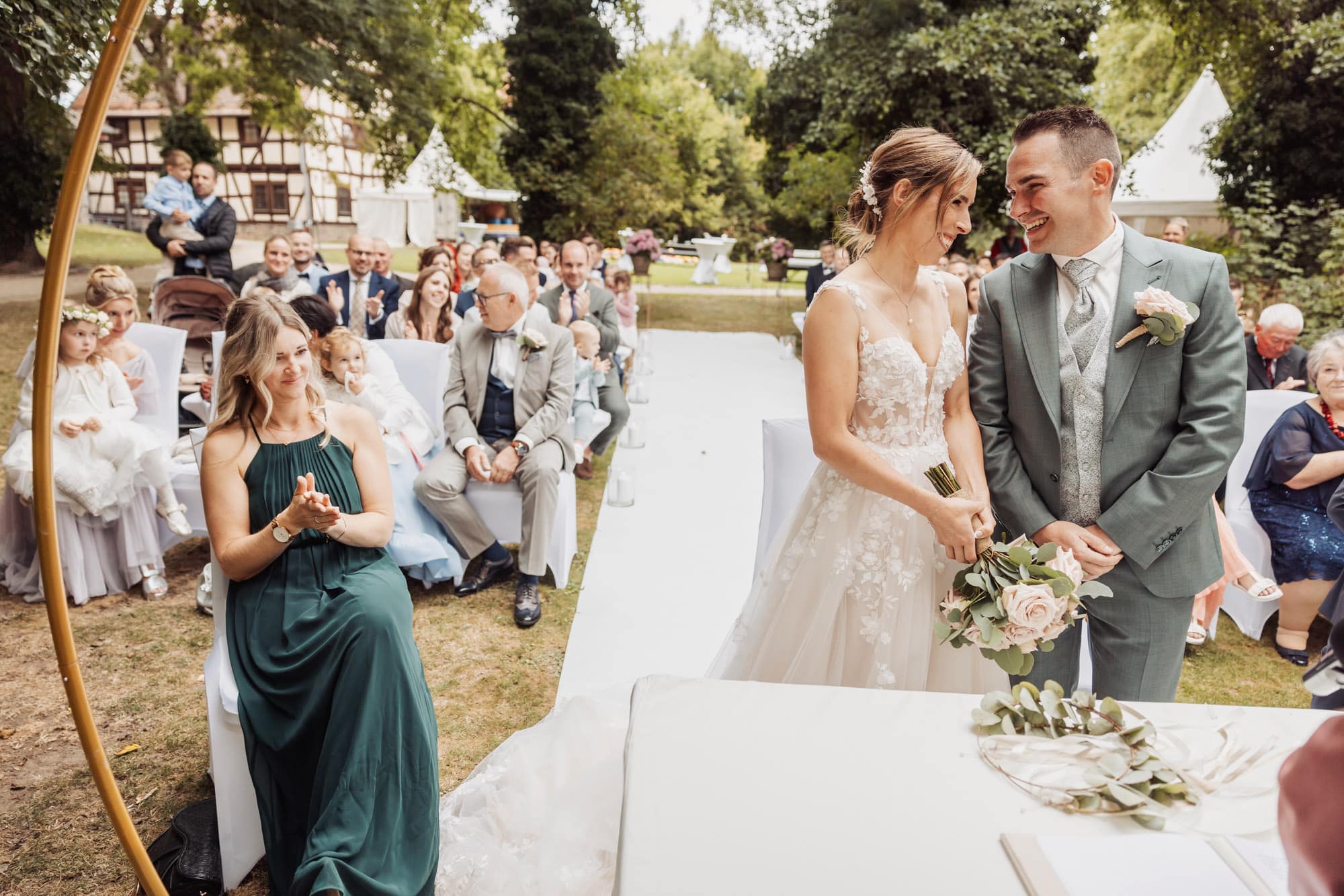 - Das finale Detailgespräch (kurz vor der Hochzeit): Zeitnah zur Hochzeit setzen wir uns noch einmal zusammen und gehen den Ablauf final durch. So ist alles wirklich fertig geplant – inklusive Zeiten, Programmpunkten und allen kleinen Details, die euren Tag ausmachen.